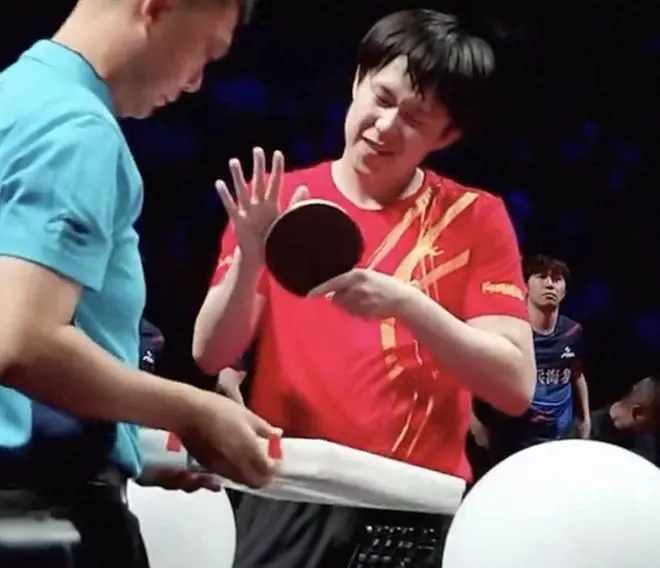 比赛过程中出现意外插曲,王楚钦因未携带常用发带临时借用他人装备。运动心理学研究表明,运动员对特定装备的依赖可能影响临场发挥,这种细节因素在顶尖选手对决中尤为关键。