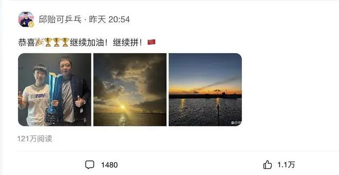 夺冠后,邱贻可在社交媒体发布与孙颖莎的合影及日落照片,并表达继续合作的意愿。中国乒乓球队历来重视师徒传承,张继科与肖战、马龙与秦志戬等组合都曾取得显著成效。