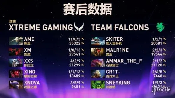 第四局Falcons抢下沙王并限制XG英雄选择,中单沙王的强势表现帮助队伍再度扳平。决胜局双方均祭出冷门英雄,Falcons通过前期gank建立优势,虽遭遇XG多次反扑,但凭借稳健运营最终以3-2夺冠。这是Falcons战队历史上首次获得Ti冠军。