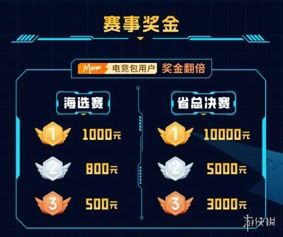 赛事采用线下赛制,设有现金奖励机制:冠军1000元、亚军800元、季军500元。参赛队伍中若有超过三名电竞包用户,所获奖金可翻倍。比赛过程将通过虎牙、斗鱼及视频号平台进行同步直播。