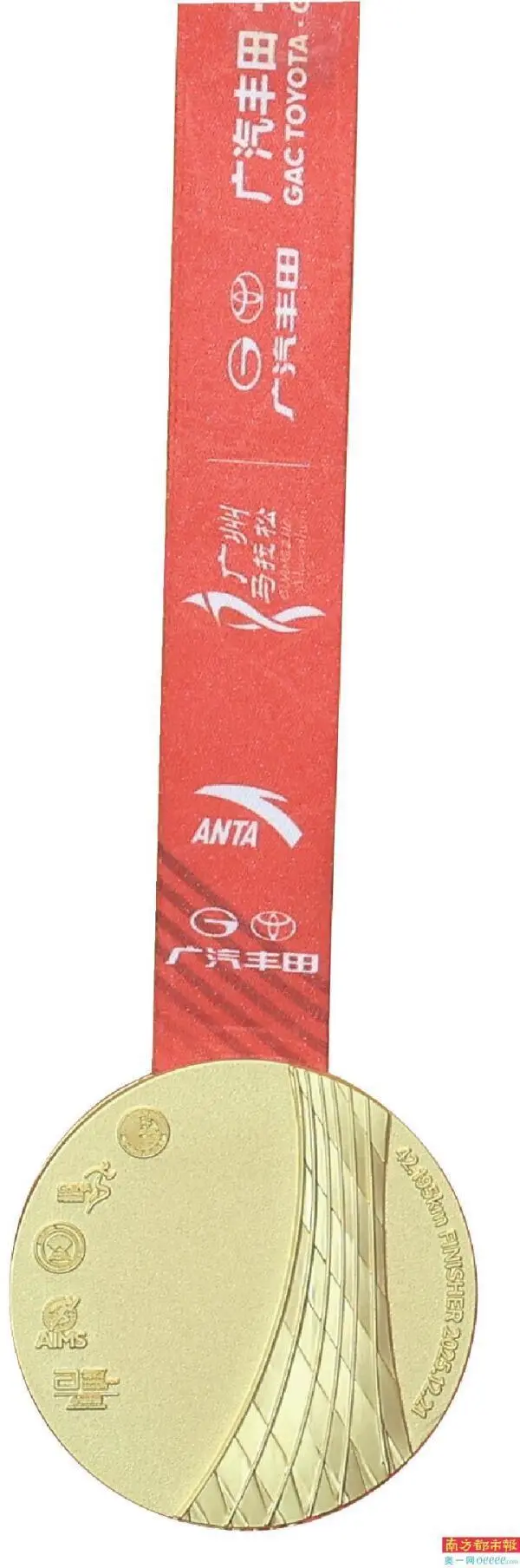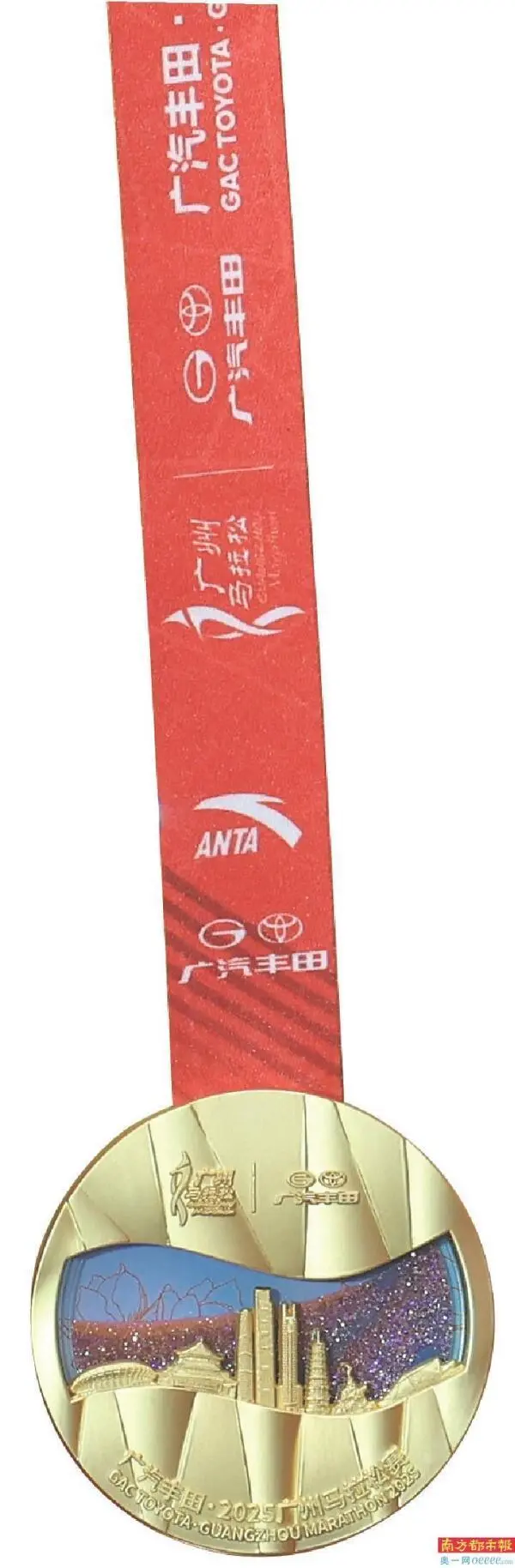 完赛奖牌正面采用流沙工艺呈现广州建筑群与水波交融的视觉效果,展现城市发展脉络。该设计获得国际田联丈量员认证,赛道调整涉及琶洲大桥延伸段及滨江西路折返点优化。