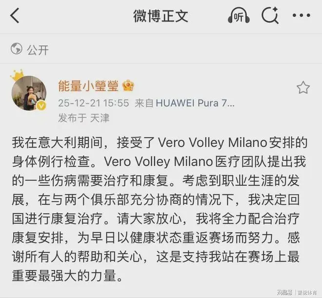 俱乐部层面,天津女排在近期全运会赛事中曾安排李盈莹带伤出战,这一情况也被部分球迷提及。李盈莹此前在社交媒体分享的训练照片显示,其脚部因训练磨破出血,可见日常训练强度较大,这可能与她后续的身体状态存在关联。