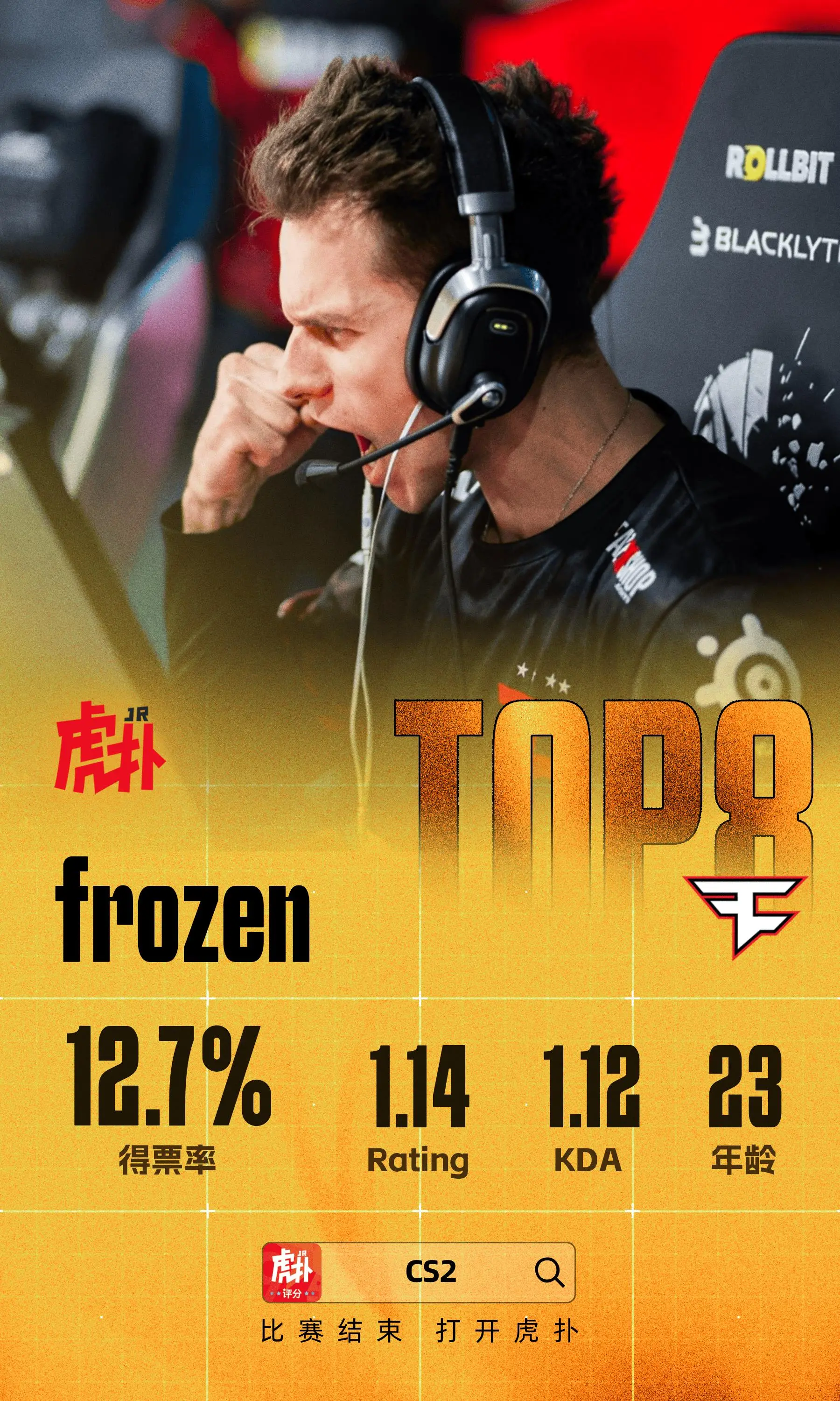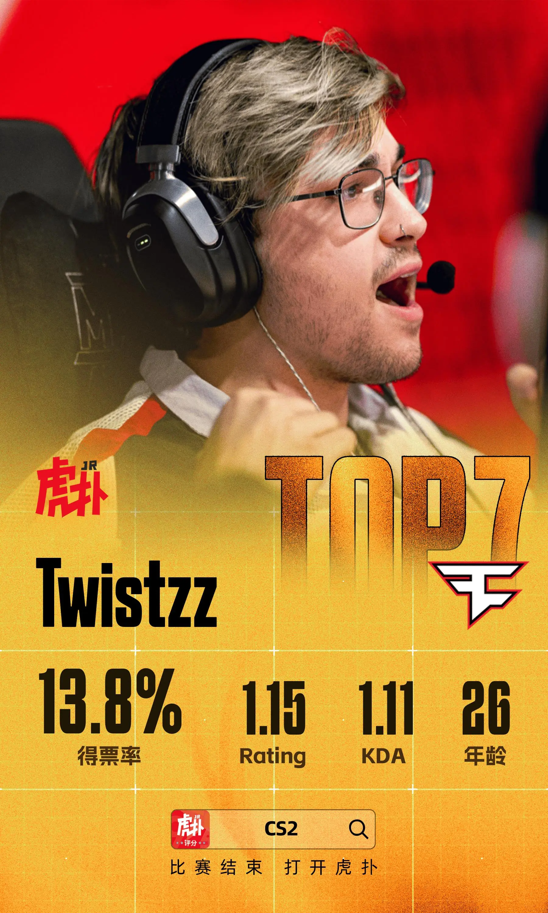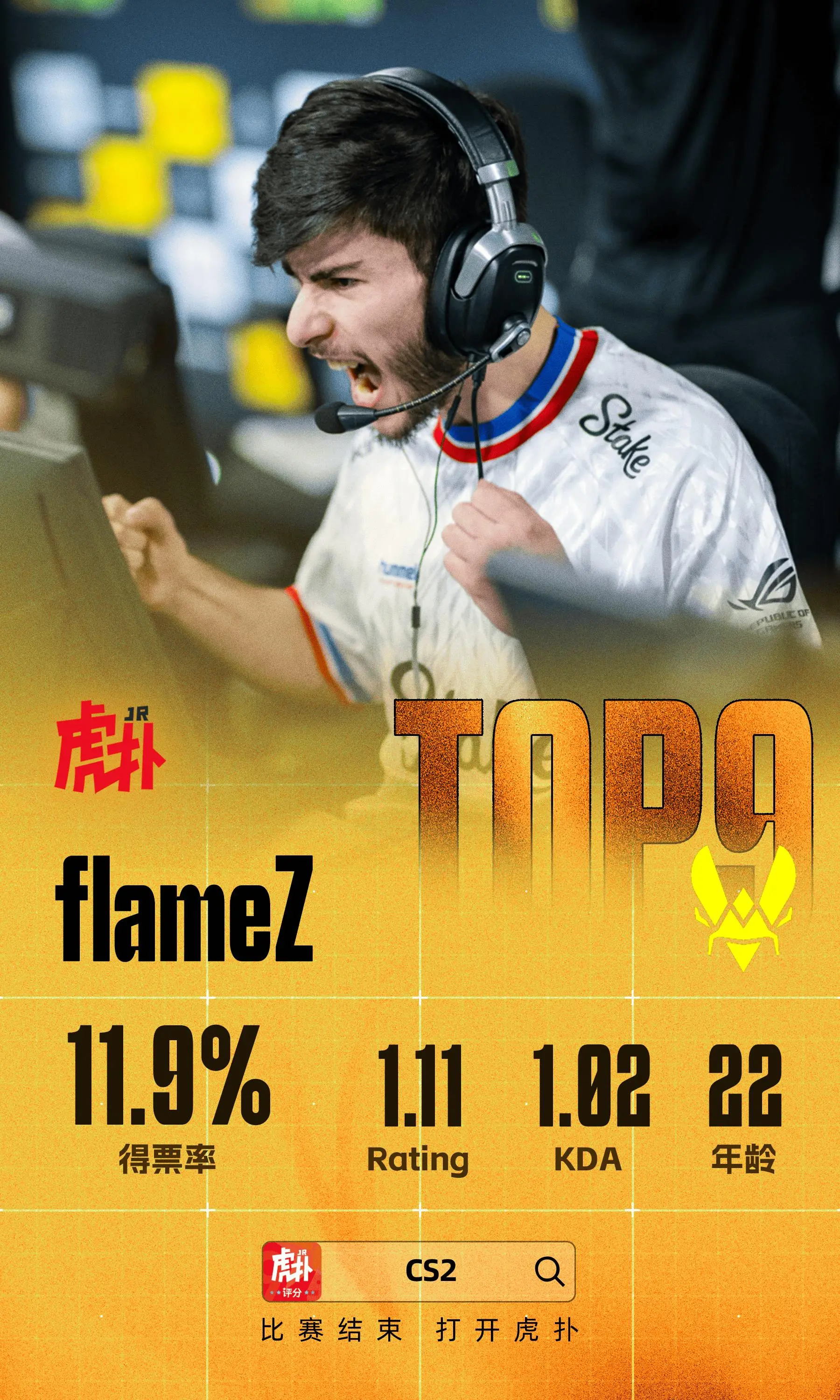 从选手国籍来看,这个区间涵盖了加拿大、巴西、斯洛伐克、法国和波黑五个国家,国际化程度较往年明显提升。Twistzz作为北美CS的代表人物,其13.8%的得票率显示出观众对非欧选手的认可。而flameZ的入选则标志着法国CS新生代的成熟,这位22岁小将用1.11的Rating接过了前辈的接力棒。