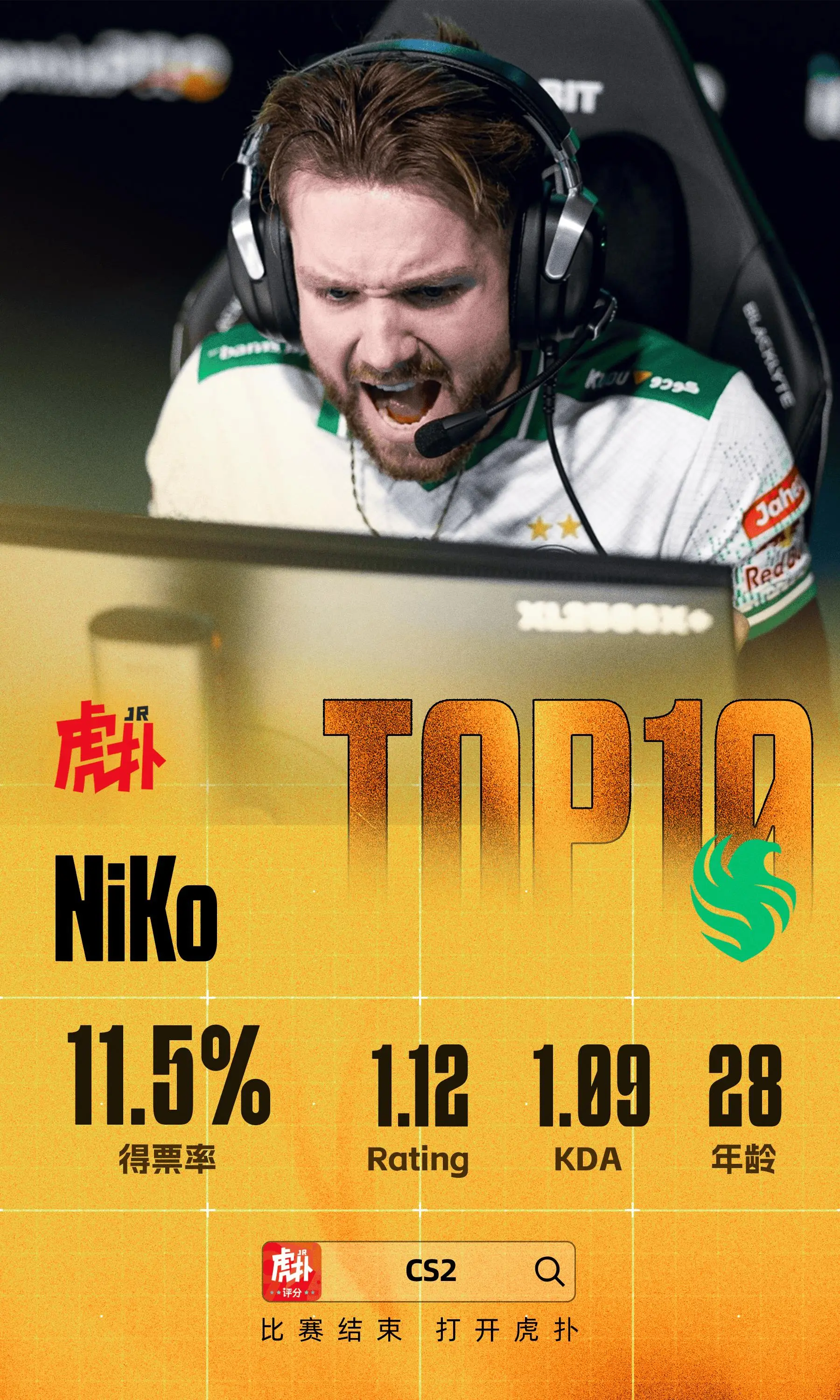 在虎扑CS2年度TOP20选手评选中,6-10名选手呈现出明显的年龄分层特征。FURIA战队的KSCERATO与FaZe双子星Twistzz同属26岁中生代,而23岁的frozen与22岁的flameZ则代表着新生代力量。最年长的NiKo以28岁"高龄"仍保持1.12的Rating,展现出老将的稳定价值。这种年龄分布反映出CS2职业圈新老交替的生态格局,年轻选手的快速崛起与传统强者的持续输出形成鲜明对比。